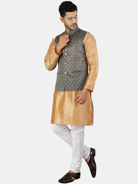 Look edgy by layering your shirt with this well-designed Nehru jacket from Wintage. Just put on a pair of chino trousers and leather shoes and you are good to go.