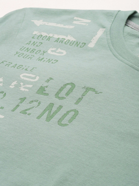 Grey and White printed T-shirt, has a round neck, and short sleeves