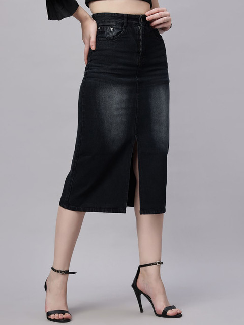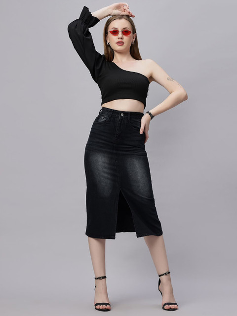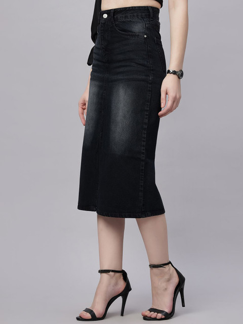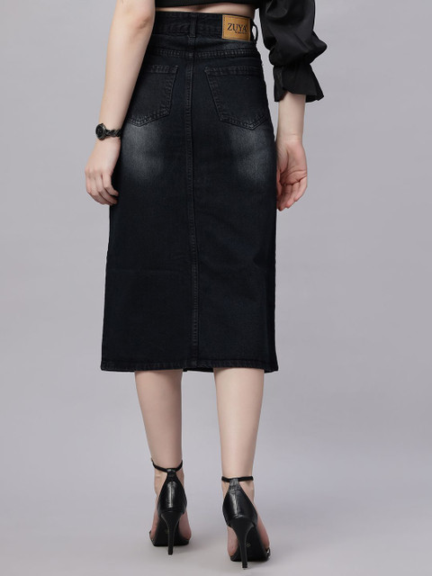 Zuya Black Whisker Denim Women Skirt Edgy Urban Style