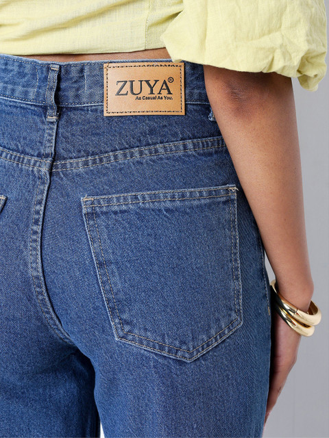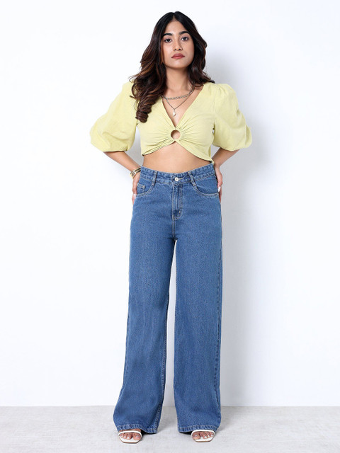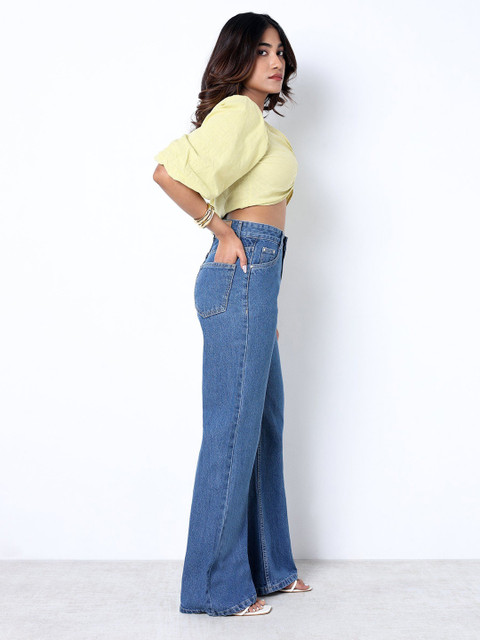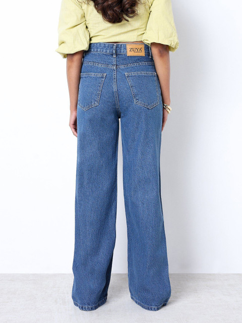 ZUYA non stretch super wide leg denim jeans in light blue colour