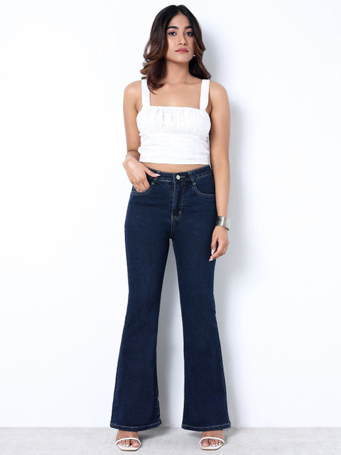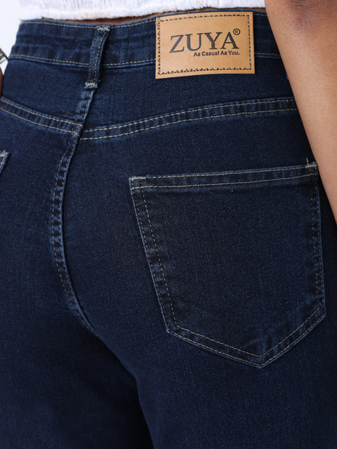Zuya Stretch Bootcut Denim Jeans In Dark Blue Color